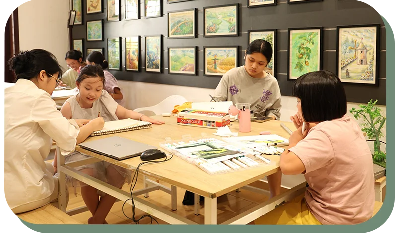 Với tiêu chí “Lấy học viên làm trung tâm”, mỗi khóa học đều được phân tích kỹ lưỡng từ vấn đề giáo dục xã hội đến chuyên ngành hội họa. Sau đó, hình thành bộ giải pháp giáo dục ưu việt, linh hoạt nhằm tiếp cận phù hợp với trình độ, tâm lý, lứa tuổi của từng học viên.